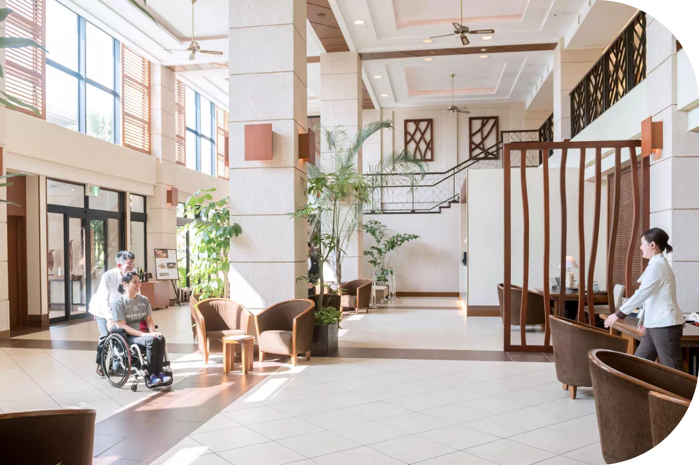 沖縄県では、年齢、性別、障がいの有無等に関わらず、誰もが気兼ねなく参加できるユニバーサルツーリズムを推進するため、県内観光関連事業者等を対象とした各種セミナーの開催や専門アドバイザーの派遣等を行っています。